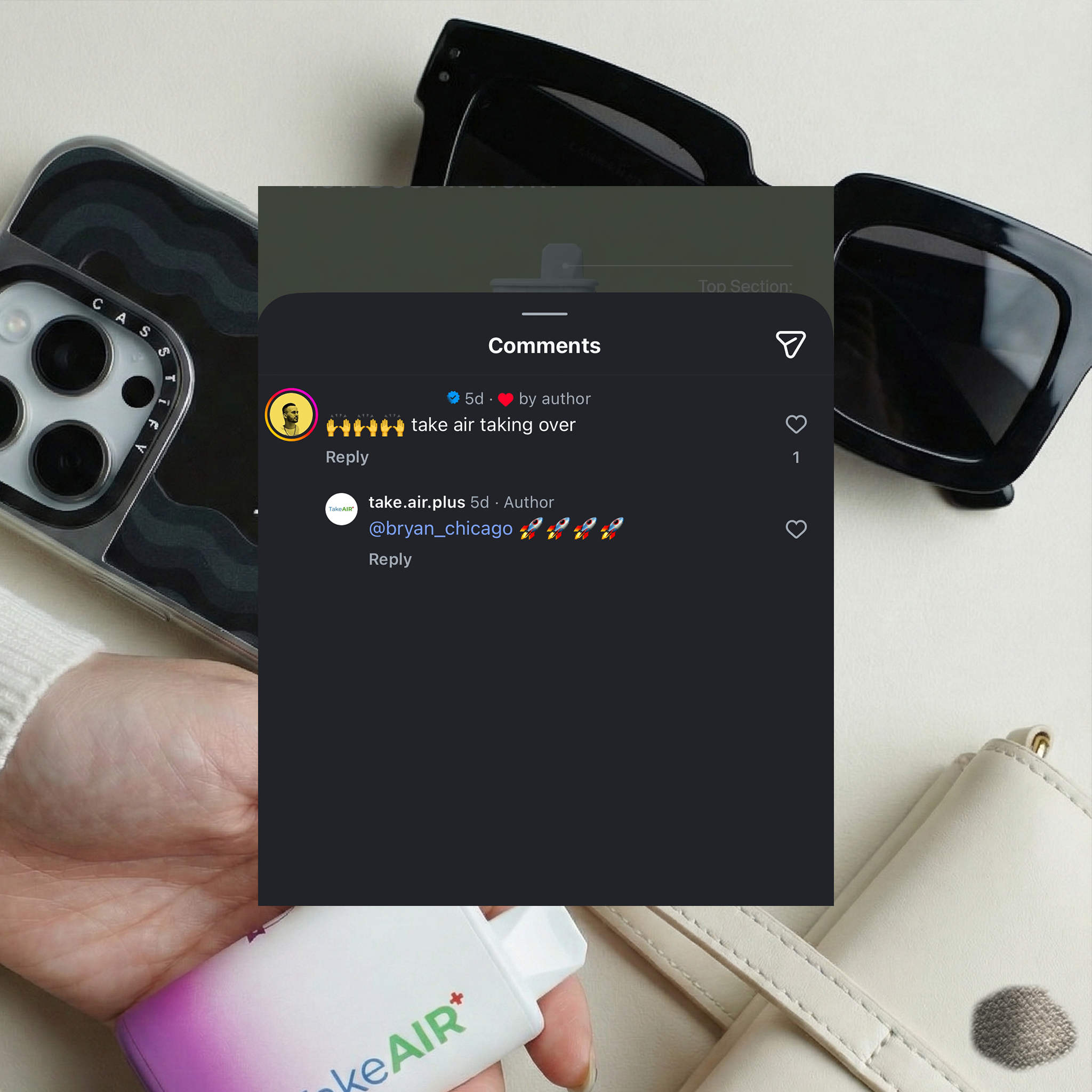 “As someone working from home non-stop, my environment can get stale, stressed, and kinda stressful. I keep TakeAir+ (Lychee flavor) on my desk and I’ll take a puff whenever I need a quick mental breather. It almost feels like a reset button — light floral scent, calming, subtle — no harshness at all. After a couple weeks I noticed I drink more water, feel less agitated, and my mood between meetings stays more even.”